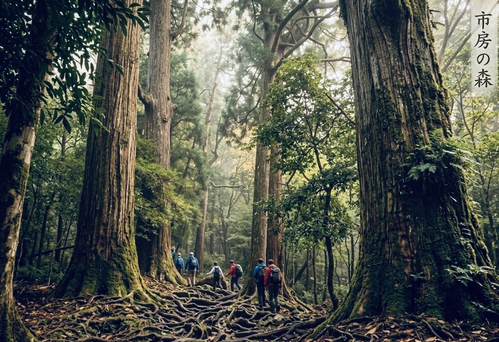 This breathtaking photograph perfectly captures the majestic and deeply spiritual atmosphere of Ichifusa no Mori (Ichifusa Forest), located on the slopes of Mount Ichifusa. It is one of the most powerful and revered natural landscapes in our region.