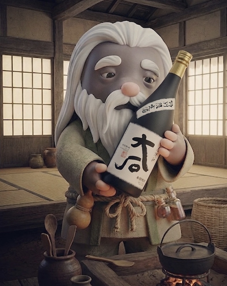 Held in the arms of the Shochu Sage, this is a premium bottle of ‘Ohishi,’ the signature brand from Ohishi Shuzo in Mizukami Village, which we discussed earlier.